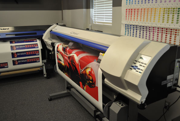 Printed plotters capable to put the image on a huge range of rolled materials as vinyl, banner, textil, canvas, etc. Used for outdoor advertising, registration of an interior and an exterior, advertising by buses and cars. The widescreen print shares on two parts.