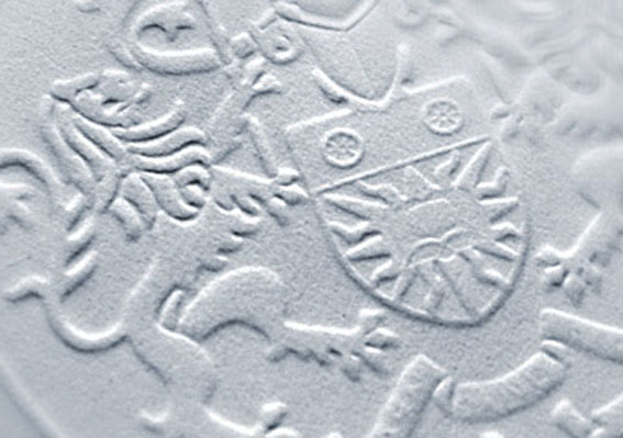 Блинтовое тиснение. Клише под высоким давлением вдавливается в поверхность материала, оставляя рельефный отпечаток. Дополнительно возможно использование фольги и в таком случае изображение получается рельефным с металлизированным цветом.